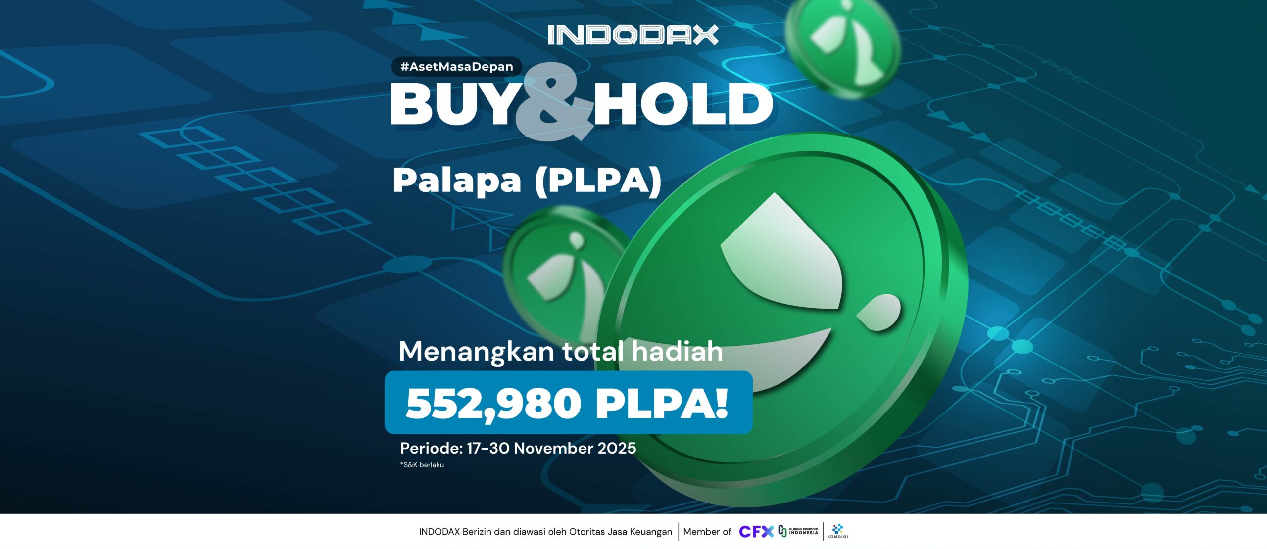 - Periode pendaftaran untuk berpartisipasi dibuka mulai 12/11/2025 dengan cara membeli PLPA di Indodax dan hold PLPA selama periode berlangsung. Akumulasi pada akhir periode yang akan dihitung untuk cashback.