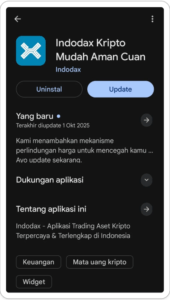 Jika Anda mengalami kendala login akun Indodax melalui aplikasi mobile Android, pastikan terlebih dahulu aplikasi Indodax sudah diperbarui ke versi terbaru.