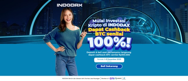 Bagi kamu member baru INDODAX, INDODAX kini menghadirkan promo paling menguntungkan untuk memulai langkah pertamamu di dunia kripto. Khusus untuk pengguna baru mendapatkan kesempatan mendapatkan cashback senilai Rp100.000 dalam bentuk Bitcoin (BTC), sehingga kamu bisa langsung merasakan keuntungan bahkan sejak awal bergabung di INDODAX.