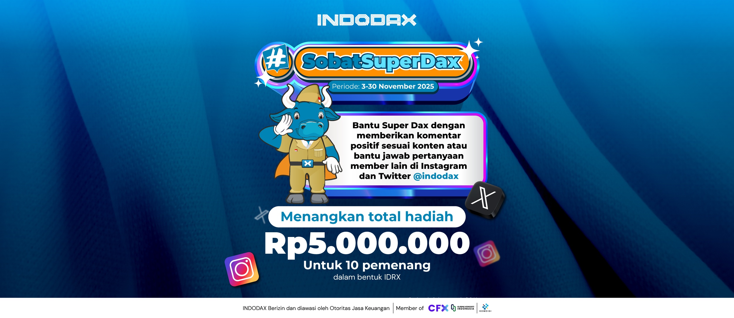Yuk jadi #SobatSuperDax dengan memberikan komentar positif sesuai konten atau bantu jawab pertanyaan member lain di Instagram @indodax atau Twitter @indodax